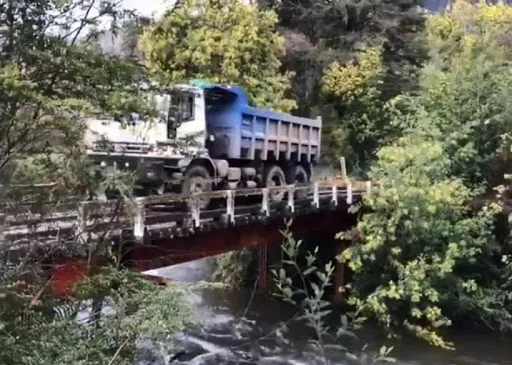 Una impactante caída quedó registrada en video cuando el puente Nahuelpan, en la comuna de Villarrica colapsó mientras pasaba un camión.